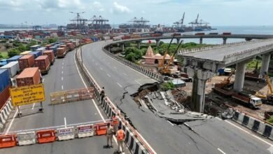 जेएनपीए बंदराला जोडणारा पूल खचला अपघाताच्या शक्यतेमुळे वाहतूक बंद!