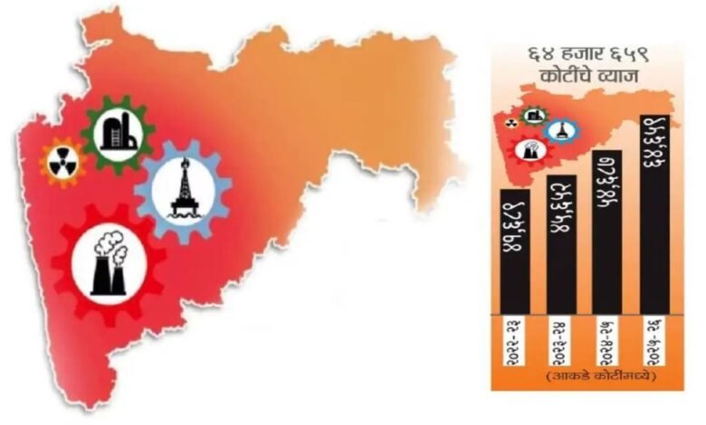 सन २०२२- २३ या आर्थिक वर्षात व्याजापोटी सरकारला ४१ हजार ६८९ कोटी रुपये मोजावे लागले, तर २०२३- २४ मध्ये ४५ हजार ६५२ कोटी आणि २०२४- २५ मध्ये ५४ हजार ६८७ कोटी रुपये द्यावे लागले. चालू आर्थिक वर्षाच्या अखेरीस सरकारला एकूण कर्जावरील व्याजापोटी ६४ हजार ६५९ कोटी रुपये द्यावे लागणार असल्याचा अंदाज वित्त विभागाने वर्तवला आहे.