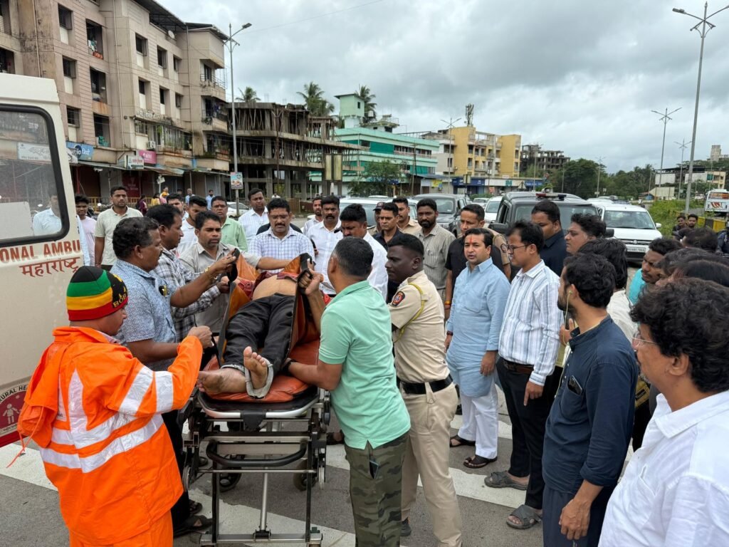 रस्त्यावर एक दुचाकीस्वार जखमी अवस्थेत पडलेला होता. हा अपघात पाहताच ना. राणे यांनी ताफा थांबवला आणि ते मदतीसाठी आले. त्यांनी स्वतः लक्ष घालून रुग्णवाहिकेला बोलावून घेतले. जखमी व्यक्तीला त्वरीत रुग्णालयात हलवून त्याच्यावर योग्य उपचार सुरू होतील, याची त्यांनी खात्री केली.