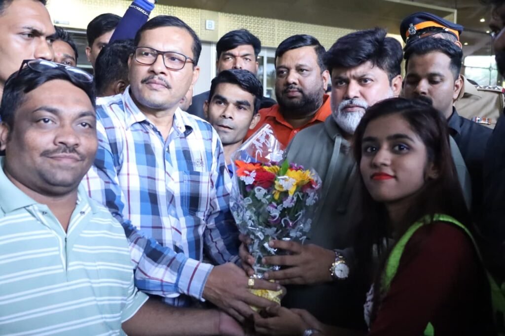जर्मनी येथून मुंबईत परतताच महाराष्ट्र राज्याचे उद्योग व मराठी भाषा मंत्री मा. ना. उदयजी सामंत ह्यांची आज छत्रपती शिवाजी महाराज आंतरराष्ट्रीय विमानतळावर मुंबई इंडिगो एरलाइन्सचे प्रमुख देवेश गौर आणि मुंबई इगले एरलाइन्सचे प्रमुख बेन्नी फर्नांडीस यांनी भेट घेतली.