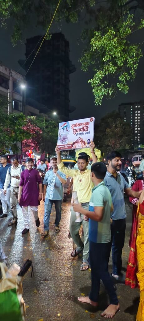 मुंबई, पुणे येथे ठिकठिकाणी तरुणांनी विसर्जन मिरवणुकीत तरुणांनी व्यसनमुक्तीबाबत फलक झळकावून जागृती केली.