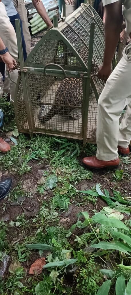 याबाबत वन विभागाकडून मिळालेली सविस्तर माहिती अशी की, आज (१७ सप्टेंबर) सकाळी साडेनऊ वाजण्याच्या सुमारास मौजे साडवली कासारवाडी (ता. संगमेश्वर) येथील राजेंद्र धने यांच्या राहत्या घराच्या मागील बाजूला असलेल्या भागात बिबट्या अडकला असल्याची माहिती साडवलीचे पोलीस पाटील यांनी वन विभागास दिली.