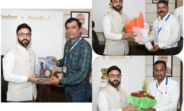​अपर जिल्हाधिकारी भाऊसाहेब गलांडे, निवासी उपजिल्हाधिकारी चंद्रकांत सूर्यवंशी यांनी पुष्पगुच्छ देऊन नूतन जिल्हाधिकारी श्री. जिंदल यांचे स्वागत केले. जिल्हा माहिती अधिकारी प्रशांत सातपुते यांनी लोकराज्य चा अंक देवून त्यांचे स्वागत केले.