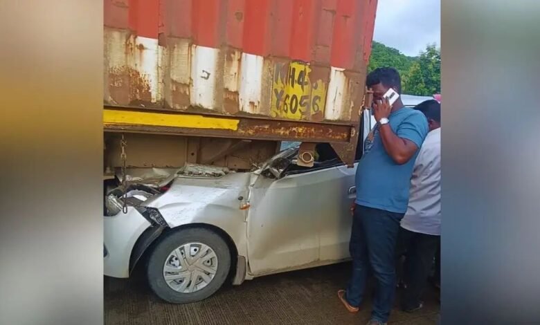मुंबई गोवा महामार्गावर रायगड जिल्ह्यात भरधाव कारची मालवाहतूक ट्रकला धडक ,भीषण अपघात, लातूर येथील वैद्यकीय महिला अधिकाऱ्याचा जागीच मृत्यू