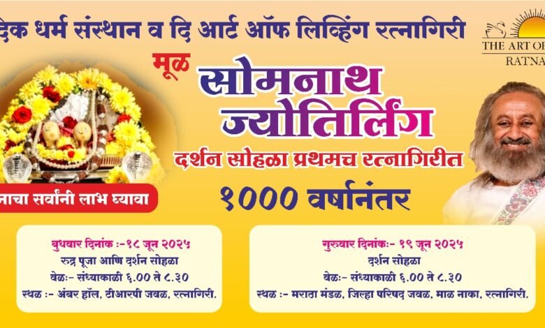 दि आर्टऑफ लिव्हिंग तर्फे महाराष्ट्रात सोमनाथ ज्योतिर्लिंग दर्शन यात्रा रत्न नगरीत दाखल.