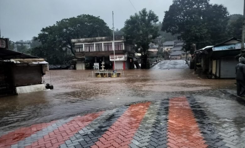 सकाळी सहा वाजता शहरातील जवाहर चौकात पुराचे पाणी भरल्याने शहरातील संपुर्ण वाहतुक व्यवस्था कोलमडली आहे . हवामान खात्याने मंगळवारी कोकणातील जिल्ह्यांसाठी पावसाचा ऑरेंज अलर्ट जारी केल्याने जिल्हा प्रशासनाने सोमवारी रात्रीच जिल्ह्यातील सर्व शाळा व महाविद्यालयाना सुट्टी जाहीर केली आहे . आजच्या पावसाने तालुक्यातील अनेक भागात पुराचे पाणी शिरल्याने संपुर्ण जनजीवन विस्कळीत झाले आहे .
