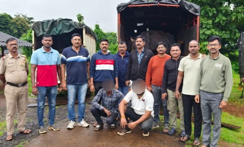 त्या अनुषंगाने दिनांक २८ ऑगस्ट रोजी स्थानिक गुन्हे अन्वेषण शाखेचे एक पथक लाजा उपविभागा मध्ये गस्त करत असताना ओणी ते पाचल मार्ग अणुस्कुरा घाटातून गोवश जातीच्या जनावरांची वाहतूक होणार आहे अशी विश्वसनीय बातमी मिळाल्याने हे पथक रायपाटण येथे वाहनांची तपासणी करण्याकरिता दि. 29/08/2025 टोजी 03.30 वाजता थांबले व वाहनांची तपासणी करीत असताना 05.55 वाजता एक महींद्रा कंपनीची जीनीओ मॉडेलचे चारचाकी वाहन क्रमांक MH-04-FP-6424 व त्या पाठोपाठ आयशर प्रो-1059 मॉडेलये चारचाकी वाहन क्रमांक MH-07-X-1511 ही वाहने थांबवून त्याची तपासणी केली असता महींद्रा कंपनीची जीनीओ मॉडेल चारचाकी वाहन क्रमांक MH-04-FP-6424 या वाहनाच्या हौद्यामध्ये 8 गोवंश जातीची जनावरे तसेच आयशर प्रो-1059 मॉडेलचे चारचाकी वाहन क्रमांक MH-07-X-1511 या वाहनाच्या हौद्यामध्ये 11 गोवंश जातीची जनावरे अशी एकूण 19 जनावरे यांना दोरी च्या सहाय्याने दाटी वाटीने जवळ-जवळ बांधलेले मिळून आले.