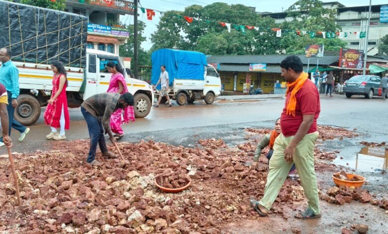 गुहागर मनसेच्या दणक्याने शृंगारतळीतील रस्त्याचे खड्डे बुजवले…