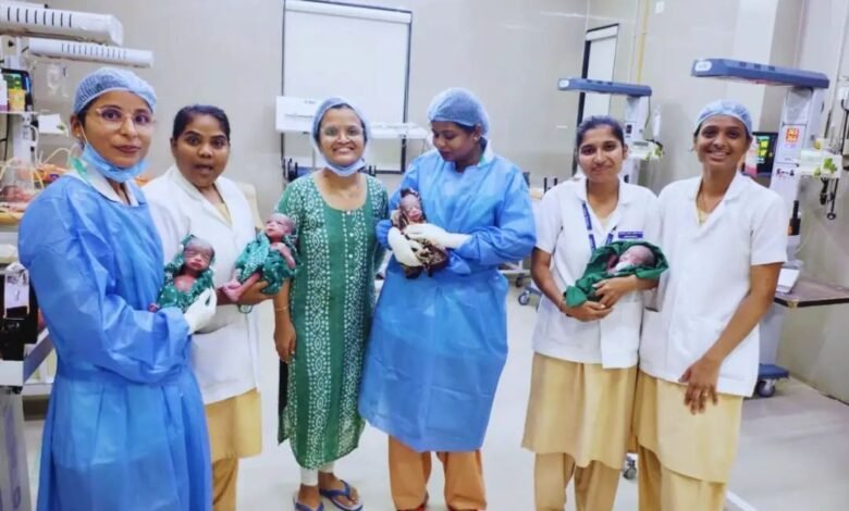 सातारा जिल्हा रुग्णालयात शुक्रवारी संध्याकाळी एक विलक्षण प्रसंग घडला. कोरेगाव तालुक्यात माहेरी आलेल्या काजल विकास खाकुर्डिया या 27 वर्षीय तरुणीने एकाचवेळी चार बाळांना जन्म दिला आहे. त्यात तीन मुली आणि एका मुलाचा समावेश आहे. या आधी तब्बल पाच वर्षांपूर्वी काजलला तीन जुळी बाळं झाली होती. म्हणजेच एका मातेच्या आयुष्यात तब्बल सात बाळं…!गुजरातमधील मूळ रहिवासी असलेल्या आणि सध्या सासवडमध्ये गवंडी म्हणून काम करणाऱ्या विकास खाकुर्डिया यांच्या घरी आता सात देवदूतांचा गोड गोंगाट सुरू झाला आहे.