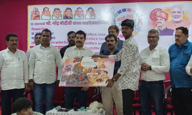 कलाशिक्षक रोशन गोताड यांचा ‘नमो-देवेंद्र जीवनरंग’ या चित्रकला स्पर्धेत प्रथम क्रमांक