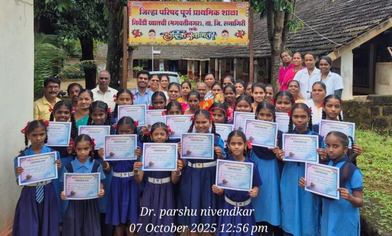 मालगुंड प्राथमिक आरोग्य केंद्राच्या वतीने जिल्हा परिषद शाळा निवेंडी खालची भगवतीनगर येथे HPV लसीकरण कार्यक्रम आयोजित करण्यात आला. या उपक्रमात शाळेतील विद्यार्थिनींना गर्भाशय मुखाच्या कर्करोगापासून संरक्षण देणारी HPV लस देण्यात आली.