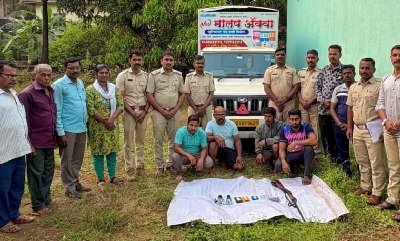 संगमेश्वर तालुक्यातील मौजे राजवाडी येथे शिकारीच्या उद्देशाने फिरणाऱ्या टोळक्याला वनविभागाने ताब्यात घेतले ,बंदूक हस्तगत