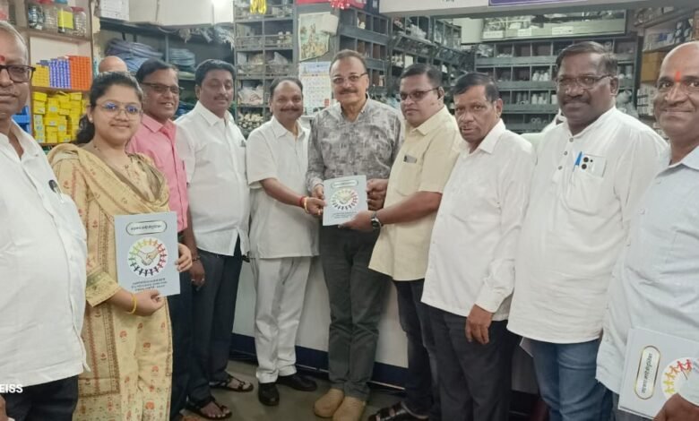बाजारपेठेत व्यापाऱ्यांना पुस्तिका वितरण