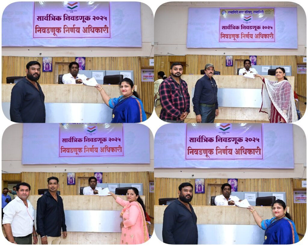 शिवसेनेकडून आज अस्मिता सुशील चवंडे (१५ अ), मैथिली मयेकर (१२ अ), अनिकेत अनिल वालम (१ ब), सायमा नदाफ काझी ( ४ अ), मंजुळा विजय कदम (५ ब), सरिता जितेंद्र कदम (५ ब), कामना अरुण बेग (९ ब) यांनी अर्ज भरले. शिवसेना उद्धव बाळासाहेब ठाकरे पक्षाकडून प्रसाद सुरेश सावंत (३ ब), राजश्री बिपीन शिवलकर (१५ अ), साजीदखान अकबरखान पावसकर (८ ब), अमित वसंत विलणकर (१५ ब), नाझनीन युसुफ हकीम (९ ब) यांनी अर्ज भरले आहेत. उद्या अर्ज भरण्याचा शेवटचा दिवस असल्यामुळे महायुती व आघाडीतील उमेदवारी न मिळालले नाराज उमेदवार अपक्ष म्हणून अर्ज भरण्याची शक्यता वर्तवली जात आहे त्यामुळे उद्या शेवटच्या दिवशी अर्ज दाखल करणाऱ्यांची भाऊ गर्दी उसळणार आहे
