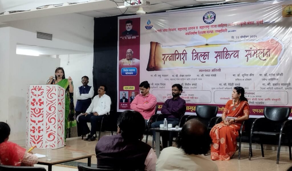 महाराष्ट्र शासनाचा मराठी भाषा विभाग, महाराष्ट्र राज्य साहित्य आणि संस्कृती मंडळ (मुंबई) यांच्या अनुदानातून आणि नवनिर्माण शिक्षण संस्थेतर्फे रत्नागिरी जिल्हा साहित्य संमेलन घेण्यात आले. यात दुपारच्या सत्रात आयोजित केलेल्या या परिसंवादात भाषा अभ्यासक अरुण इंगवले, संगमेश्वरी बोलीचे अभ्यासक आणि पत्रकार अमोल पालये, गोवा येथील बोलीभाषा अभ्यासक प्रा. सारिका अडविलकर सहभाग घेतला. या परिसंवादाचे अध्यक्षस्थान मराठी, बोलीभाषा अभ्यासक प्रा. डॉ. निधी पटवर्धन यांनी भूषविले.