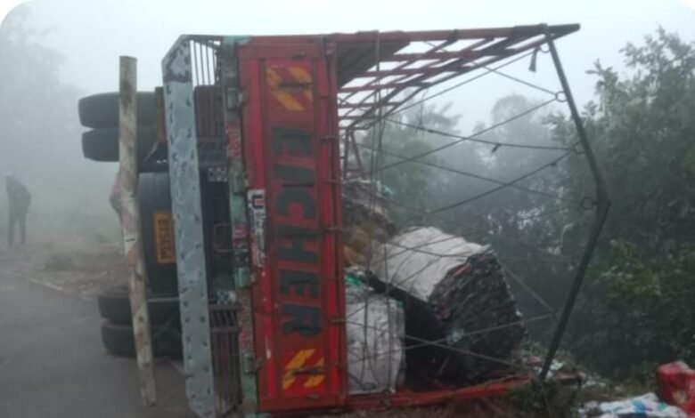 फुणगूस–जाकादेवी मुख्य रस्त्यावरील तीव्र व अवघड वळणावर आयषर टेम्पो ला अपघात मोठी दुर्घटना टळली