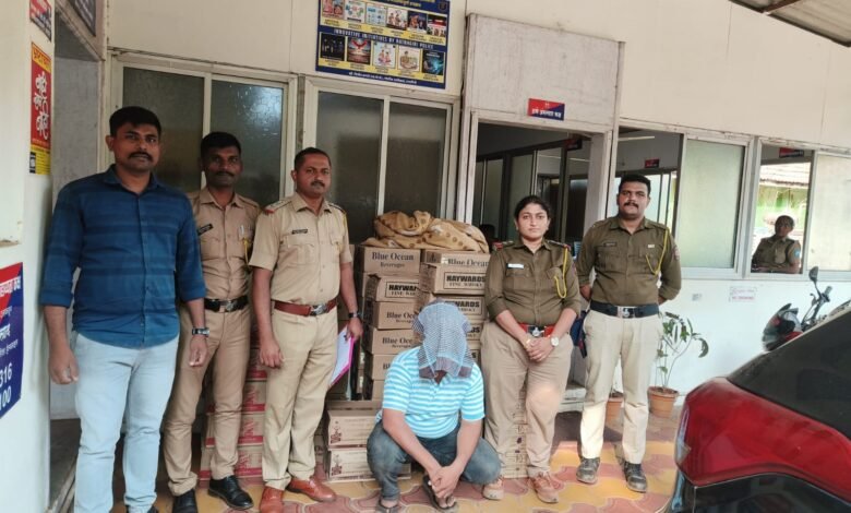 या कारवाईत पोलीसांनी सुमारे १ लाख १५ हजार ९२० रुपये किंमतीची गोवा बनावटीची दारू असलेले ६७ बॉक्स, तसेच सुमारे पाच लाख रुपये क्रेटा कार (क्र. एमएच ०५ इऐ ०६६१) असा एकूण ६ लाख १५ हजार ९२० रुपयांचा मुद्देमाल ताब्यात घेतला आहे.
