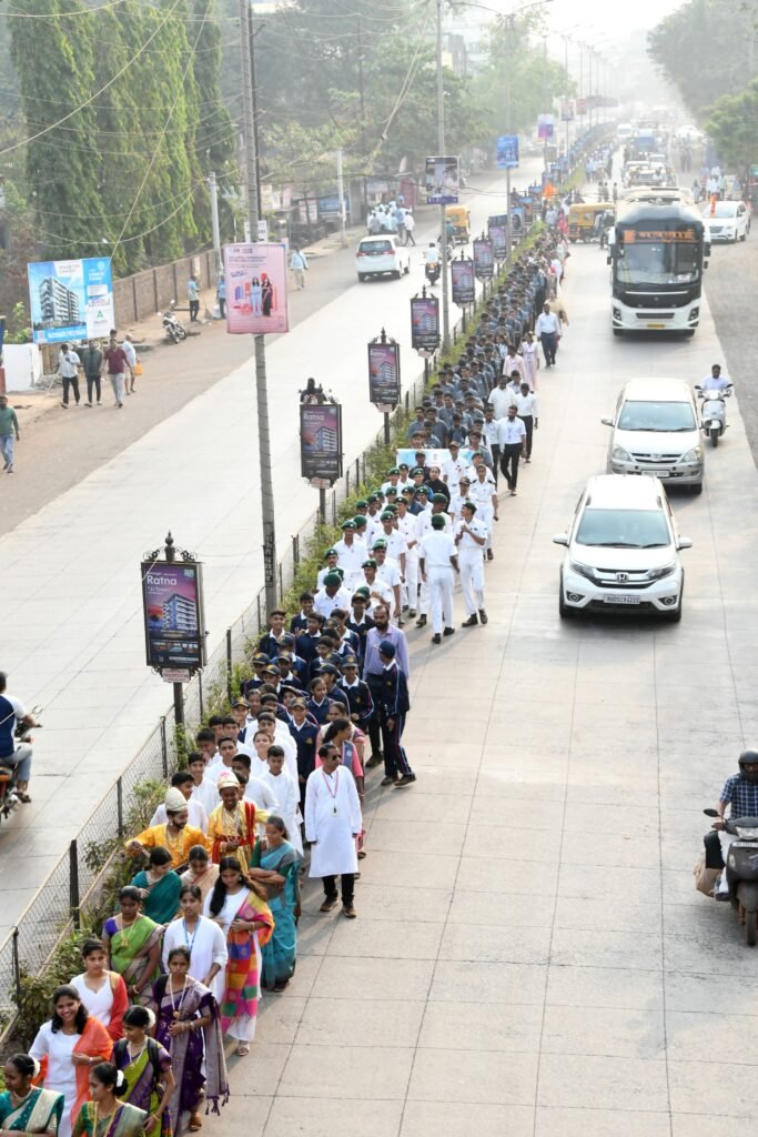 या पदयात्रेची सांगता जयस्तंभ चौक येथे झाली. कार्यक्रमाचे नेटके सूत्रसंचालन अभिजीत गोडबोले यांनी केले. या सोहळ्याला ग्लोबल मराठा हायस्कूल, दामले विद्यालय, पटवर्धन हायस्कूल, रा. भा. शिर्के प्रशाला, श्री छत्रपती शिवाजी हायस्कूल झाडगाव, एनसीसी, एनएसएस, स्काऊड गाईड चे विद्यार्थी आदींसह नगरपरिषद, जिल्हा परिषद प्राथमिक तसेच माध्यमिक विद्यार्थी विद्यार्थ्यांचा सहभाग होता.शिक्षक आणि नागरिक मोठ्या संख्येने उपस्थित होते.