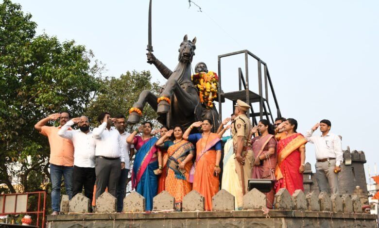 ढोल ताशांच्या निनादात आणि लेझीमच्या गजरात शिवजयंतीचा अभूतपूर्व उत्साह; पोलीस बँडची मानवंदनापारंपरिक पोशाखातील विद्यार्थ्यांच्या पदयात्रेने शहर ‘शिवमय’