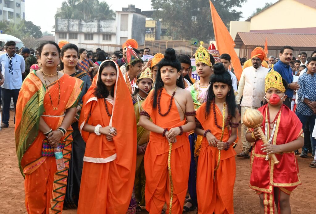 ढोल-ताशांच्या गजरात आणि लेझिमच्या तालावर स्टेडियमपासून निघालेली ही पदयात्रा महाराजांचा जयघोष करत मारुती मंदिर चौकात पोहोचली. विद्यार्थी मोठ्या संख्येने सहभागी झाले होते. बाल शिवाजी, छत्रपती शिवाजी महाराज, राजमाता जिजाऊ, मावळे, कृष्ण, विठ्ठल रखुमाई, प्रभू श्रीरामचंद्र, संत ज्ञानेश्वर, संत तुकाराम आदी संतांच्या वेशातील विद्यार्थ्यांनी सर्वांचे लक्ष वेधून घेतले.