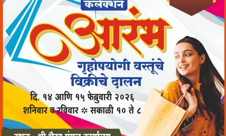 महाशिवरात्रीच्या पावन पर्वानिमित्त रत्नागिरी शहरात धनश्री कलेक्शन ग्रुपतर्फे ‘आरंभ’ या नावाने गृहोपयोगी वस्तूंचे विक्री प्रदर्शन (एक्झिबिशन) आयोजित करण्यात आले आहे. हे प्रदर्शन शनिवार व रविवार, दि. १४ व १५ फेब्रुवारी २०२६ रोजी सकाळी १० ते रात्री ८ या वेळेत श्री भैरव मंगल कार्यालय, श्री भैरी मंदिर परिसर, रत्नागिरी येथे होणार आहे.