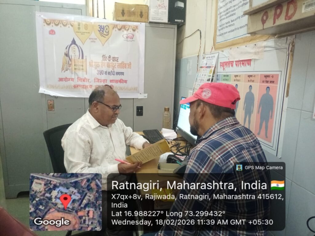 रत्नागिरी, दि. 20 ) : हिंद की चादर श्री गुरु तेग बहादूर साहिबजी यांच्या 350 व्या शहिदी समागम शताब्दी वर्षानिमित्त आरोग्य शिबिरांचे आयोजन करण्यात आले आहे. जिल्हा शासकीय रुग्णालयांतर्गत अधिनस्त सर्व ग्रामीण रुग्णालये, उपजिल्हा रुग्णालये तसेच जिल्हा शासकीय रुग्णालय येथे “हिंद की चादर” या उपक्रमातंर्गत आरोग्य शिबिर घेण्यात आलेई.