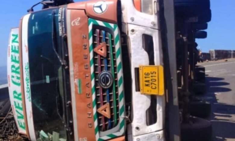 अणुस्कुरा घाटात १४ चाकी ट्रकचा अपघात