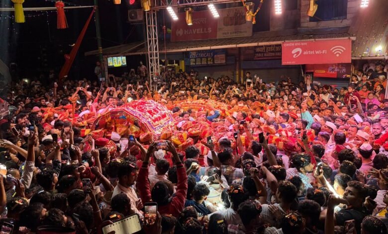 बाजार पुलावर दोन्ही पालख्यांचे जल्लोषात स्वागत करण्यात आले. श्री देव जुना कालभैरव देवस्थानासह अनेक ठिकाणची ढोल पथके या वेळी स्वागतासाठी सज्ज होती. संपूर्ण परिसर ढोल-ताशांच्या निनादाने दुमदुमून गेला होता.