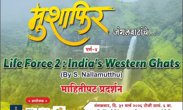 या अंतर्गत ‘लाईफ फोर्स : इंडियाज वेस्टर्न घाट्स’ या विषयावरील सुप्रसिद्ध वन्यजीव चित्रपटकार श्री. नल्ला मुत्थु यांच्या माहितीपटाचे सादरीकरण होणार आहे.