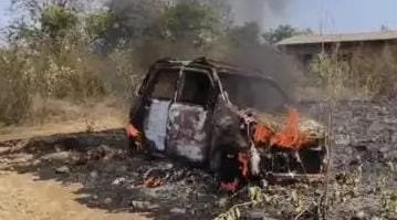 भोस्ते घाट परिसरातील मोरवंडे गावाजवळ धावत्या वॅगनार कारला भीषण आग, चालक जखमी