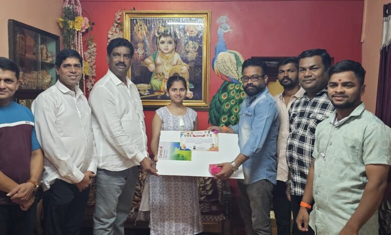 चित्रकला स्पर्धेत प्रथम क्रमांक मिळवणाऱ्या वेदा पाडावेचा ठाकरे युवासेनेकडून गौरव