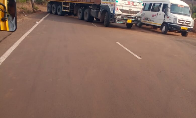 जयगड-निवळी मार्गावर अवजड वाहन बंद पडल्यामुळे वाहतुकीला अडथळा
