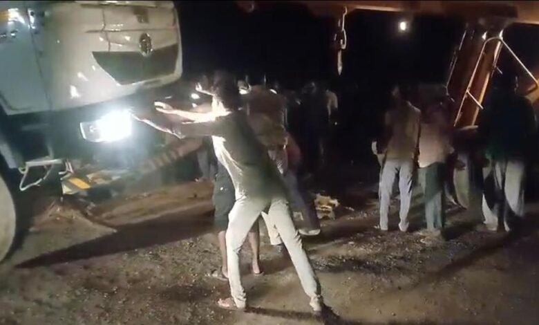 ​ मुंबई गोवा महामार्गावर संगमेश्वर नजिक सोमवारी रात्री पारेख पेट्रोल पंपाजवळ एका अवजड वाहनाचा भीषण अपघात