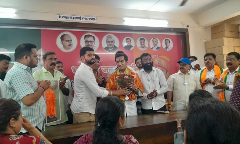 युवा मोर्चा प्रदेशाध्यक्ष कृष्णराज महाडिक यांचे रत्नागिरीमध्ये ढोल ताशांच्या गजरात स्वागत