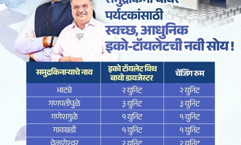 कोकण ग्रामीण पर्यटन विकास कार्यक्रमांतर्गत या प्रकल्पातून ‘सेल्फ क्लिनिंग इलेक्ट्रॉनिक इको टॉयलेट विथ बायो डायजेस्टर’ आणि ‘चेंजिंग रूम’ उभारण्यात येणार आहेत. एकूण १३ इको टॉयलेट युनिट्स आणि १३ चेंजिंग रूम्सची निर्मिती होणार असून, समुद्रकिनाऱ्यांवरील स्वच्छता आणि पर्यटकांच्या मूलभूत गरजांची पूर्तता साधण्यावर भर देण्यात आला आहे.