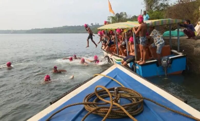 विजयदुर्ग खाडीत ९ वी सरखेल कान्होजी आंग्रे जलतरण स्पर्धेत ११० स्पर्धकांचा सहभाग!____