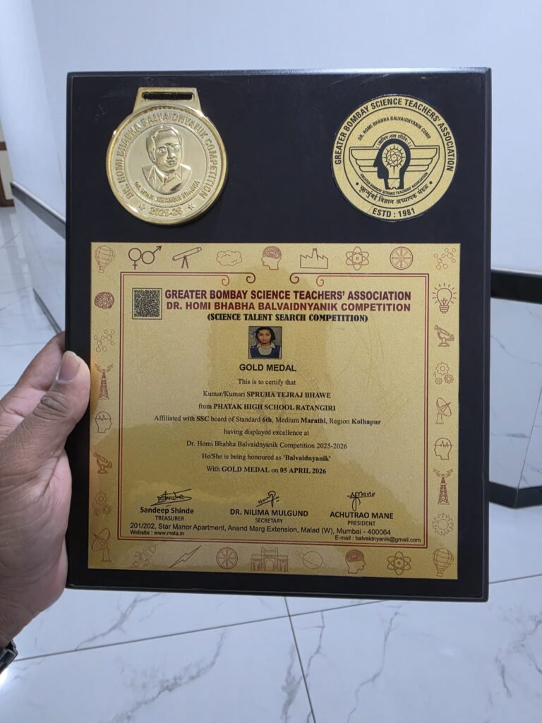 सुप्रसिध्द डॉक्टर होमी भाभा बालवैज्ञानिक स्पर्धा परीक्षेमध्ये रत्नागिरीच्या फाटक हायस्कूलची इयत्ता 6 वीची विद्यार्थिनी कु. स्पृहा तेजराज भावे रत्नागिरी जिल्ह्यामधून एकमेव सुवर्णपदक विजेती..